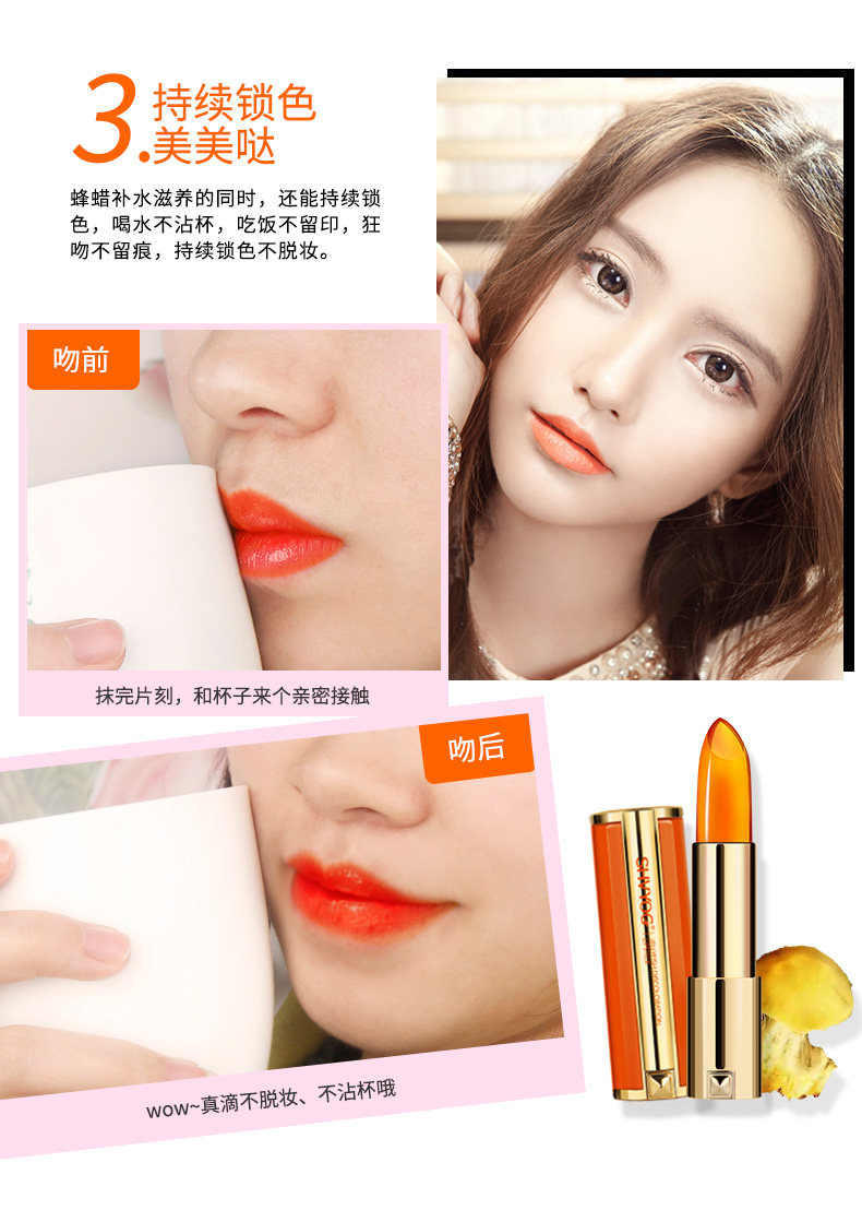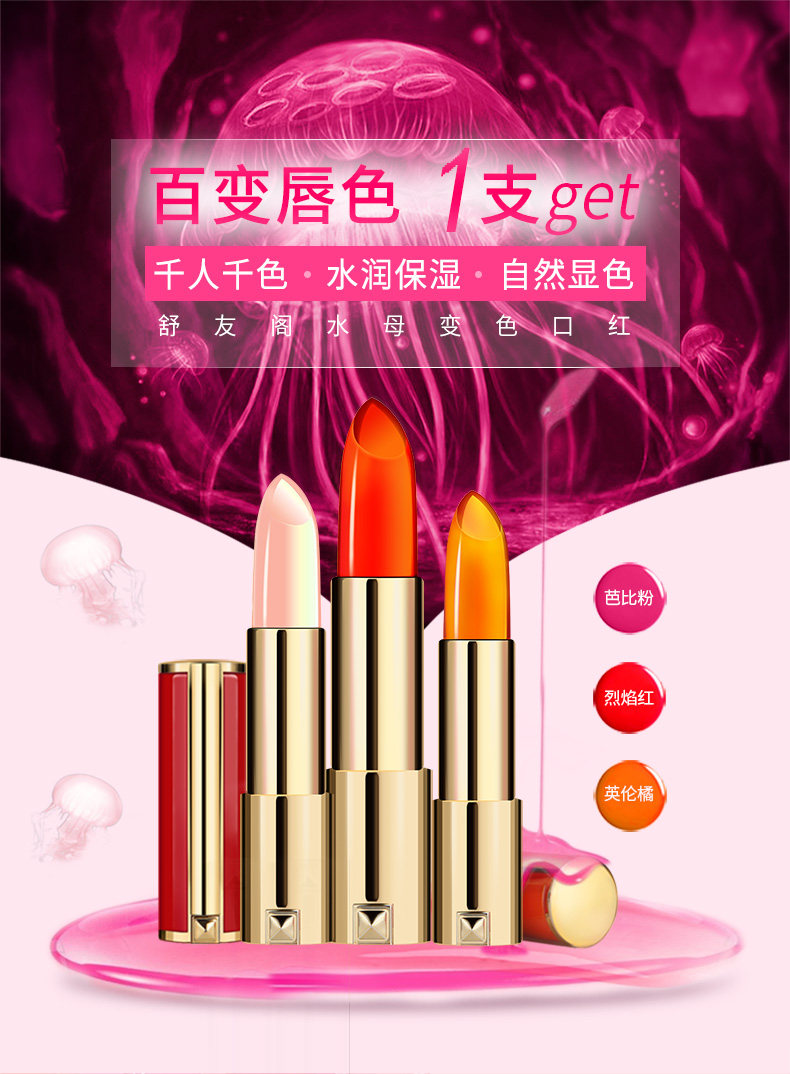 舒友阁水母变色口红3色可选持久保湿不脱色不掉色唇膏