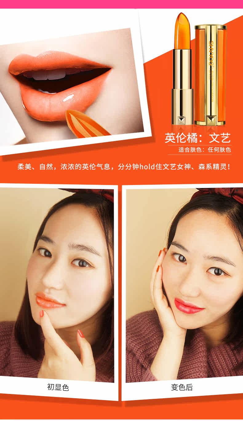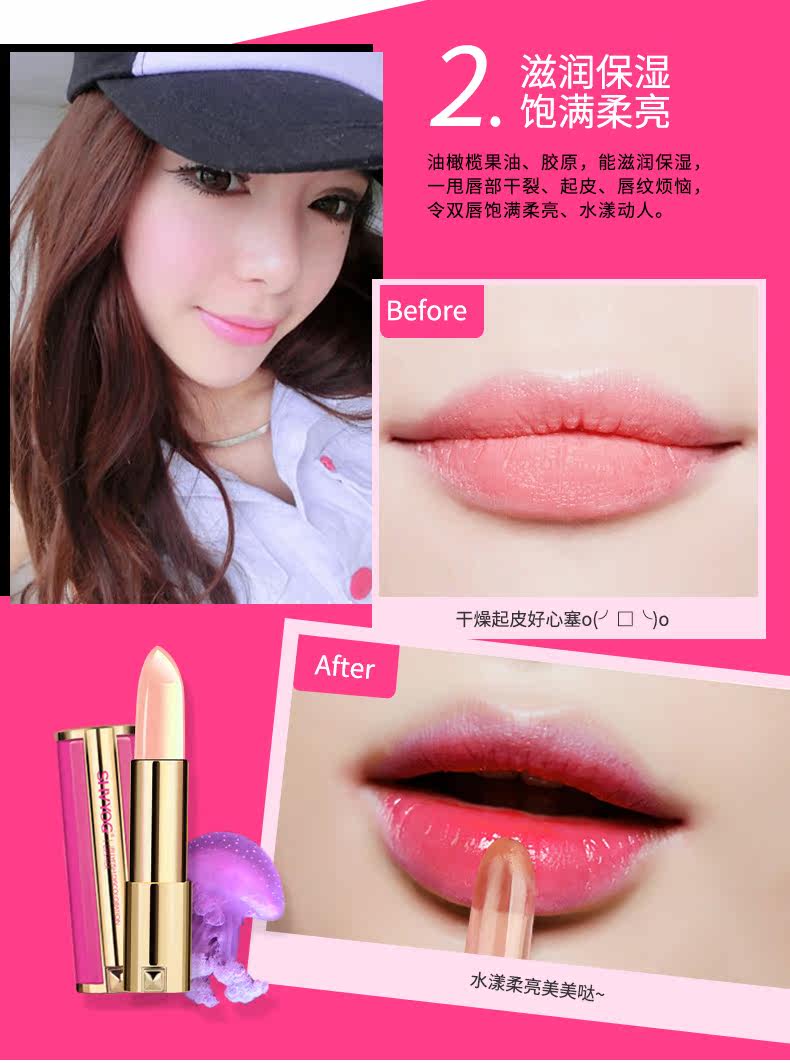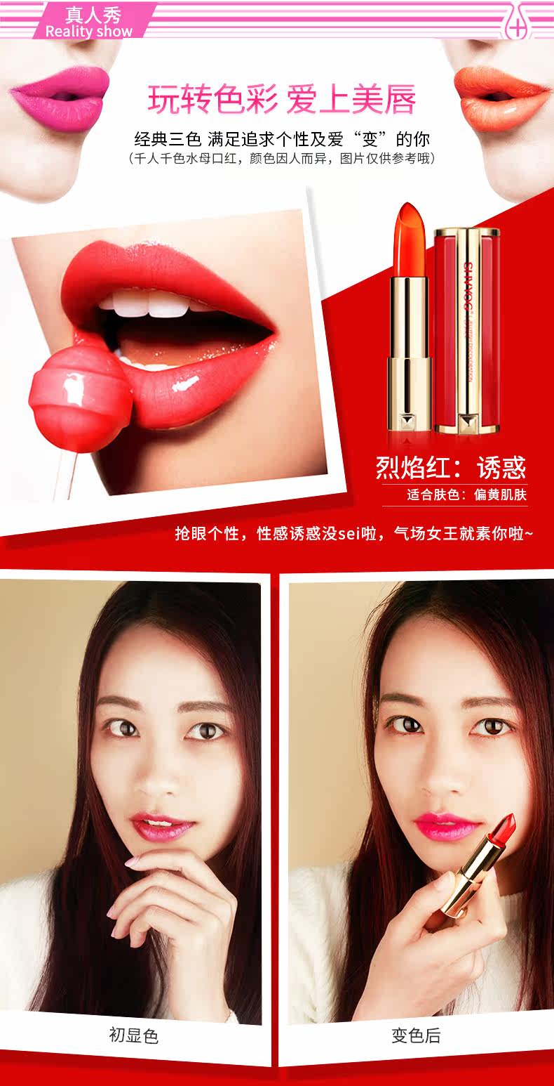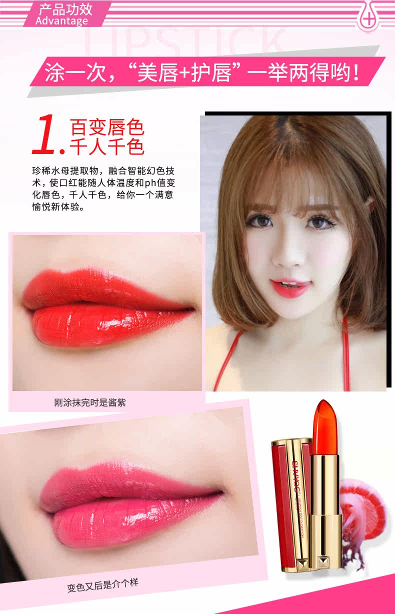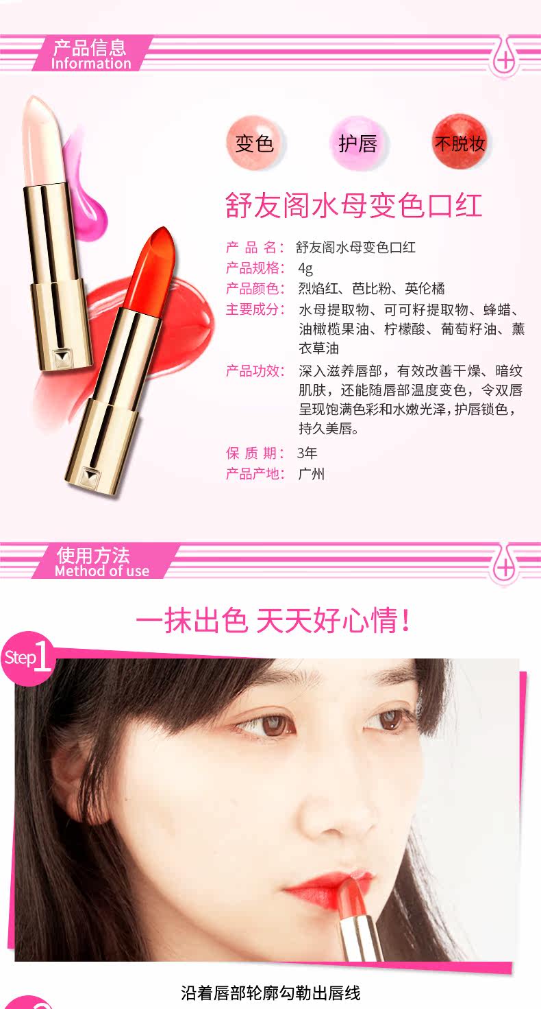 您的位置:89一折 mall.89zixun.com  >  美妆  >  舒友阁水母变色口红3色可选持久保湿不脱色不掉色唇膏