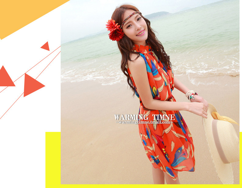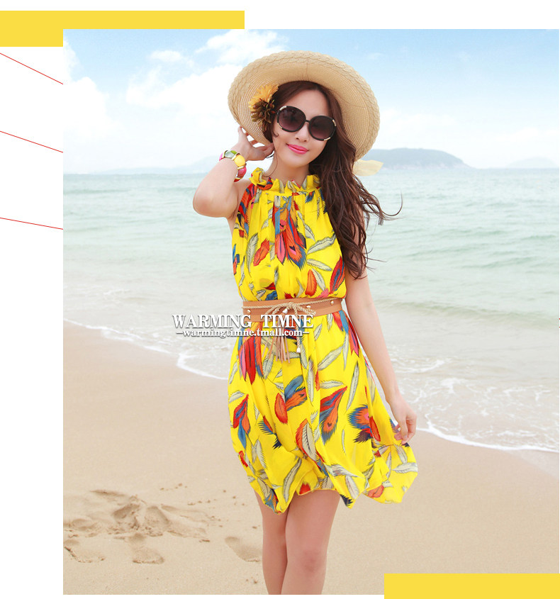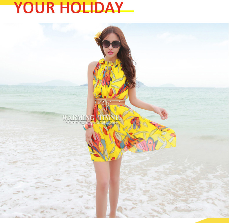 夏新雪纺沙显瘦度假连衣裙